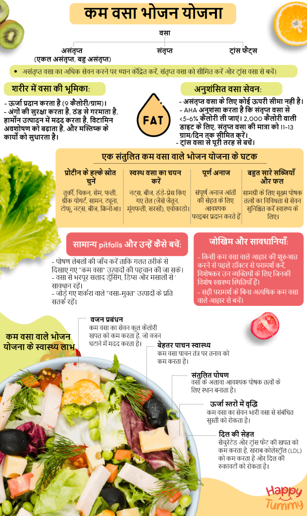 - संतुलित पोषण: वसा का सेवन कम करने से हमें अन्य आवश्यक पोषक तत्वों का सेवन करने की जगह मिलती है और हम केवल इसी पर निर्भर नहीं रहते।
